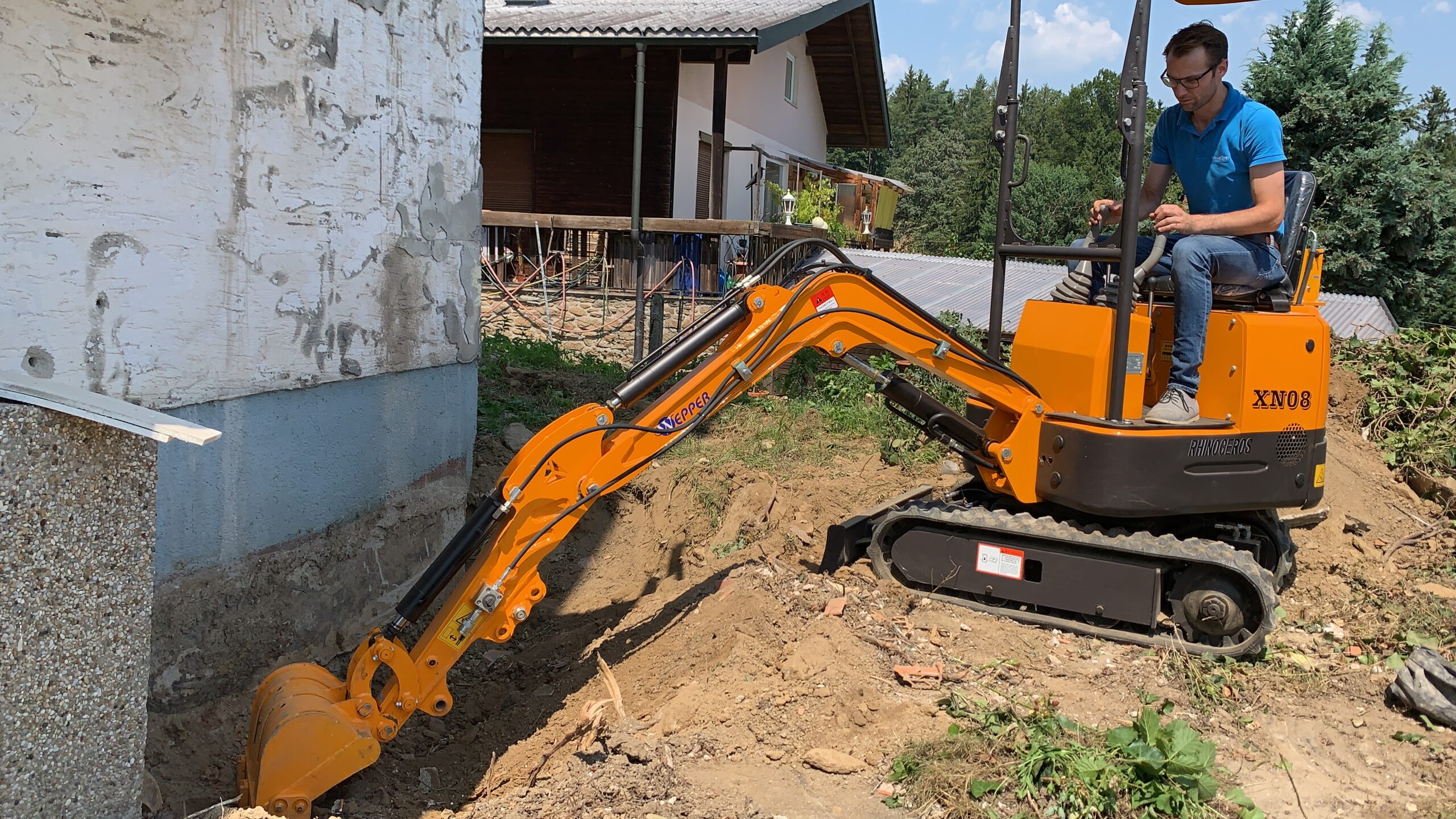 Ideal für: Erdarbeiten, Grabungen, Fundamentaushub, enge Zufahrten und Gartenbereiche.